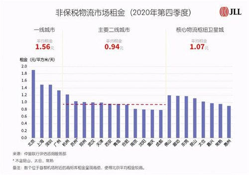 北京、上海、深圳、廣州四城的物流地產(chǎn)租賃市場表現(xiàn)明顯優(yōu)于全國其它城市,平均日租金達到1.56元/平方米。而在核心物流樞紐供不應求、城市群逐漸打破行政邊界、交通基礎設施逐步互通互聯(lián)等背景下,以昆山、太倉、東莞、佛山等為代表的衛(wèi)星城得以承接外溢需求進而迅速發(fā)展,成為區(qū)域物流市場發(fā)展的重要推動力。部分核心物流樞紐衛(wèi)星城市的租金表現(xiàn)甚至超過主要二線城市,租賃需求活力凸顯。