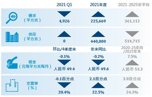 在政府類(lèi)項(xiàng)目租金常年穩(wěn)定的背景下,本季度市場(chǎng)化產(chǎn)業(yè)園項(xiàng)目為持續(xù)吸引租戶(hù),降低空置率,租金同樣保持穩(wěn)定;據(jù)高力國(guó)際數(shù)據(jù)顯示,相較于2020年第四季度,本季度租金環(huán)比略降0.1個(gè)百分點(diǎn)至49.4元/平方米/月。