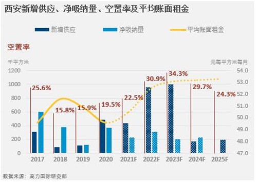 受部分項(xiàng)目開(kāi)發(fā)交付節(jié)點(diǎn)影響,高力國(guó)際認(rèn)為2021年仍是西安甲級(jí)寫(xiě)字樓“去庫(kù)存”的一年,伴隨著市場(chǎng)需求的持續(xù)回暖,預(yù)計(jì)未來(lái)一年市場(chǎng)平均空置率將有較大幅度的下降。而自2022年起,市場(chǎng)將逐漸進(jìn)入供應(yīng)放量的通道,雖市場(chǎng)需求仍將保持相對(duì)穩(wěn)定,但大量?jī)?yōu)質(zhì)項(xiàng)目的入市將加速老舊項(xiàng)目以?xún)r(jià)換量的情況,致使租金仍將處于下行通道,降幅也將隨著供應(yīng)的放量而放寬。