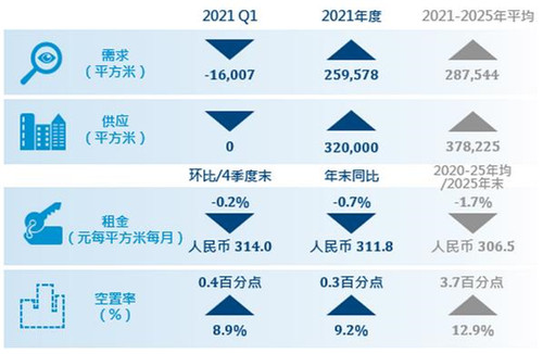 本季度西安甲級(jí)寫(xiě)字樓市場(chǎng)未錄得新增供應(yīng)。截至2021年第一季度,西安甲級(jí)寫(xiě)字樓總存量與2020年第四季度持平,共約176.6萬(wàn)平方米。