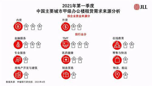 與此同時,內(nèi)資金融行業(yè)也在強(qiáng)勢擴(kuò)張、發(fā)力布局,基金證券類企業(yè)表現(xiàn)活躍。北京市場中,多家知名內(nèi)資金融企業(yè)持續(xù)在全市范圍內(nèi)探索大面積的租售機(jī)會,以實現(xiàn)人員規(guī)模和業(yè)務(wù)體量在短期內(nèi)的高速增長。上海一季度內(nèi)資公募基金與證券類公司等內(nèi)資金融服務(wù)業(yè)租賃需求進(jìn)一步提升。在杭州,基金證券類企業(yè)也在持續(xù)布局,企業(yè)上市及居民投資需求不斷提升推動著銀行、證券營業(yè)網(wǎng)點及辦公面積擴(kuò)張。