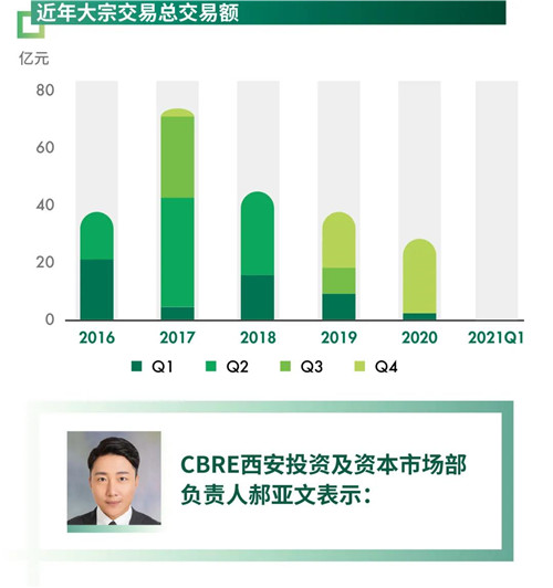 “西安市場(chǎng)過往和近期成交都可以看出,一直以來大型國(guó)企和政府相關(guān)投資、平臺(tái)公司市場(chǎng)活躍度較高;得益于政府招商引資和對(duì)外宣傳力度的不斷加大,帶來大面積辦公租賃需求,租金回報(bào)的看好;年輕消費(fèi)人口的增多,旅游市場(chǎng)的積極向上發(fā)展,也將助力商業(yè)發(fā)展;相信未來更多的機(jī)構(gòu)和資本會(huì)從關(guān)注轉(zhuǎn)為實(shí)際投資!