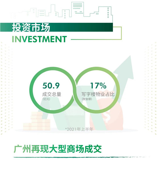 廣州本季度錄得兩單大宗成交,標(biāo)的分別是位于珠江新城的購(gòu)物中心——太陽(yáng)新天地,以及位于天河北路的天河雅樂(lè)軒酒店,交易總金額為41.6億元人民幣,同比增長(zhǎng)47%。而上半年總交易金額為50.9億元人民幣,與2020年同期相比,減少6.7%。