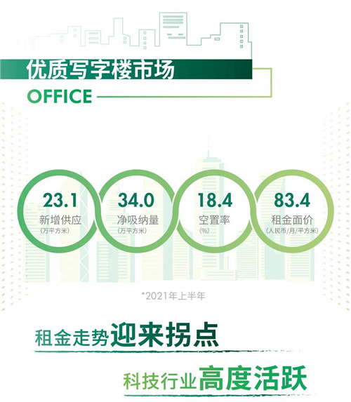 展望2021下半年,成都優(yōu)質(zhì)寫字樓市場(chǎng)約有37萬平方米的樓宇計(jì)劃入市,并主要落于市中心,繼而進(jìn)一步帶動(dòng)區(qū)域租賃活躍度。需求方面,科技、金融等引擎行業(yè)的辦公需求預(yù)計(jì)繼續(xù)增長(zhǎng)。