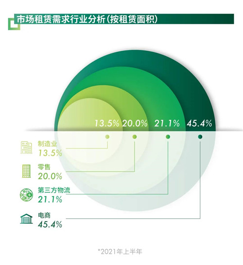著眼需求行業(yè),持續(xù)向好的消費(fèi)基本面將逐步投射到市場(chǎng),上半年除電商、食品、生鮮超市外,運(yùn)動(dòng)、潮流服飾的新增倉儲(chǔ)需求備受矚目;同時(shí),隨著成都產(chǎn)業(yè)持續(xù)升級(jí),上半年制造業(yè)租賃需求顯著回暖,吸納量絕對(duì)值是2020全年的3倍,需求占比全市較2020年上升10.7個(gè)百分點(diǎn)。
