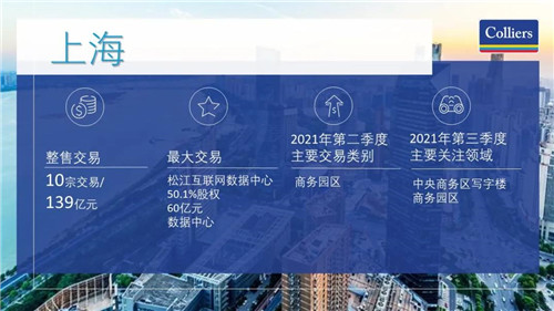 上海二季度完成10筆交易,總交易額為139億元。自用客戶仍是寫字樓和商務(wù)園區(qū)板塊最活躍的買家,而投資交易包括公寓、數(shù)據(jù)中心、物流和酒店項(xiàng)目。