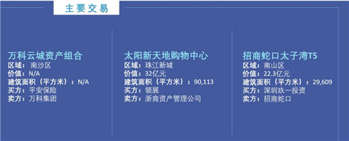 廣州錄得3筆交易,價(jià)值52.7億元,包括兩個(gè)零售項(xiàng)目和一個(gè)寫字樓交易。