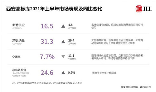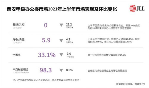 2021年上半年,西安優(yōu)質(zhì)辦公樓供應(yīng)按下暫停鍵,單一業(yè)權(quán)辦公樓空置率降至24.5%,業(yè)主方降租意愿減弱,未來兩年辦公樓市場有望迎來租金拐點。零售物業(yè)市場方面,首層品牌進行大面積調(diào)改升級,生活類業(yè)態(tài)比重增加。物流地產(chǎn)市場中,電商、快遞快運、大宗商品貿(mào)易、倉儲服務(wù)企業(yè)需求表現(xiàn)活躍,高標庫市場可租賃面積持續(xù)下降。