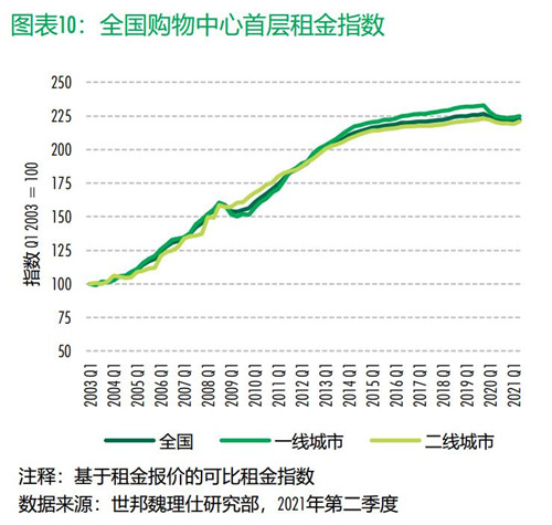 房訊網(wǎng)訊 CBRE世邦魏理仕近日發(fā)布《2021年第二季度中國(guó)房地產(chǎn)市場(chǎng)報(bào)告》顯示,零售物業(yè)市場(chǎng),今年第二季度購(gòu)物中心首層平均租金環(huán)比上升,預(yù)計(jì)受風(fēng)險(xiǎn)資本推動(dòng)的國(guó)內(nèi)品牌仍將是下半年需求的主力。