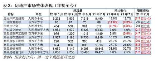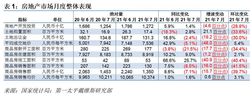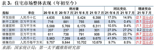 更值得關(guān)注的是,7月商品房銷售面積與銷售額同比增速放緩。月度表現(xiàn)與2019年同期相當,但不及去年同期水平。融資收緊、政策趨嚴而市場情緒降溫,共同影響銷售去化節(jié)奏。