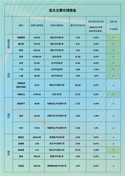 根據(jù)英國運(yùn)輸情報(bào)顧問公司(Transport Intelligence)公布的數(shù)據(jù)顯示,受新冠疫情的正面影響,亞太地區(qū)的電子商務(wù)物流市場于去年增長22%左右,達(dá)到約1,530億歐元(1,820 億美元)。盡管區(qū)域內(nèi)有疫情反復(fù)的現(xiàn)象,但亞太地區(qū)的主要倉儲(chǔ)租金基本保持不變,同比小幅下降 0.1%。在堅(jiān)韌的基本面支撐下,預(yù)計(jì)亞太地區(qū)倉儲(chǔ)市場將保持積極態(tài)勢(shì),并穩(wěn)定下半年的租金情況。