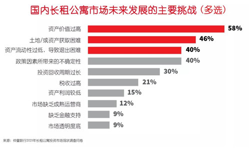 此外,“資產(chǎn)流動(dòng)性過(guò)低,導(dǎo)致退出困難”成為第三大挑戰(zhàn),退出機(jī)制已是投資者最關(guān)注的話題之一。短期內(nèi),單一資產(chǎn)或資產(chǎn)包退出仍將是主要的途徑;但中期有望通過(guò)REITs提升長(zhǎng)租公寓投資市場(chǎng)的流動(dòng)性。
