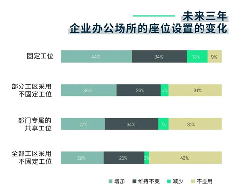 CBRE調(diào)查結(jié)果顯示,分別有26%和39%的租戶表示未來計劃在全部工區(qū)或部分工區(qū)增加共享工位。
