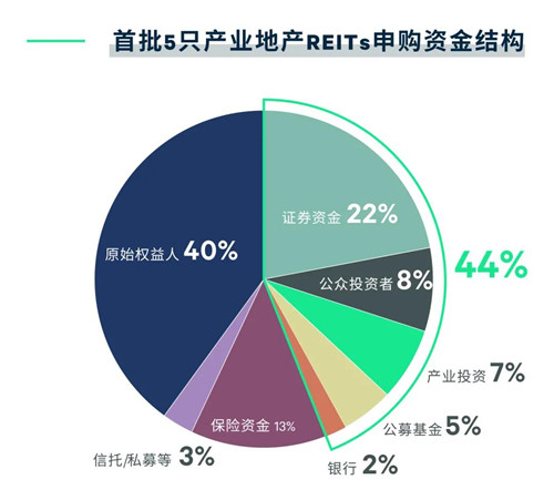 公募REITs為產(chǎn)業(yè)地產(chǎn)提供了新的退出通道,增加了市場透明度,并引入更為多元化的資本。以首批產(chǎn)業(yè)地產(chǎn)REITs為例,其申購成功的資金有44%來自于證券自營、公募基金、銀行理財、個人投資者等因相關(guān)法規(guī)或財務(wù)門檻無法直接投資大宗不動產(chǎn)的資金。