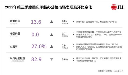 2022年第三季度重慶甲級(jí)辦公樓市場(chǎng)表現(xiàn)及環(huán)比變化