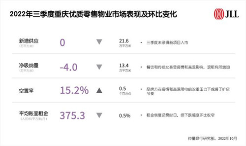 2022年三季度重慶優(yōu)質(zhì)零售物業(yè)市場(chǎng)表現(xiàn)及環(huán)比變化