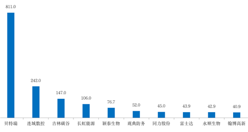 圖:北交所首周市值TOP 10 企業(yè)(億元)