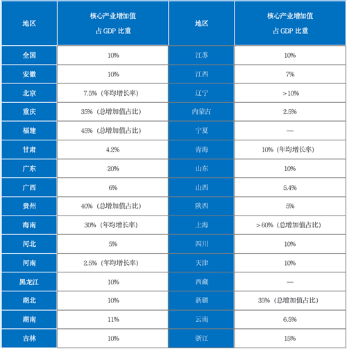 表:全國及各省市“十四五”規(guī)劃中數(shù)字經(jīng)濟(jì)發(fā)展目標(biāo)