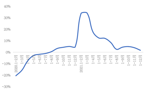 2021年,全國固定資產(chǎn)投資(不含農(nóng)戶)544,547億元,比上年增長4.9%;比2019年1—12月份增長8.0%,兩年平均增長3.9%。兩年平均增速來看,12月單月固定資產(chǎn)投資增速3.9%,略高于10月和11月。固定資產(chǎn)投資持續(xù)回升,說明穩(wěn)增長的政策已經(jīng)開始逐步發(fā)力見效。