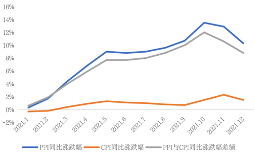 圖:2021年1月-2021年12月國內(nèi)PPI與CPI情況