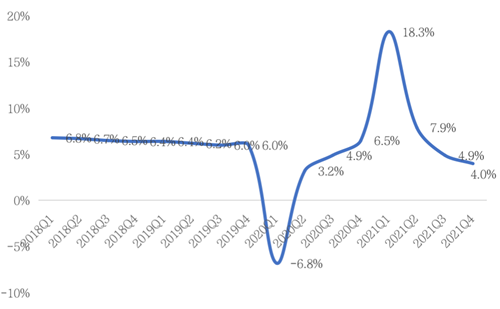 圖:2018-2021年各季度GDP增速情況