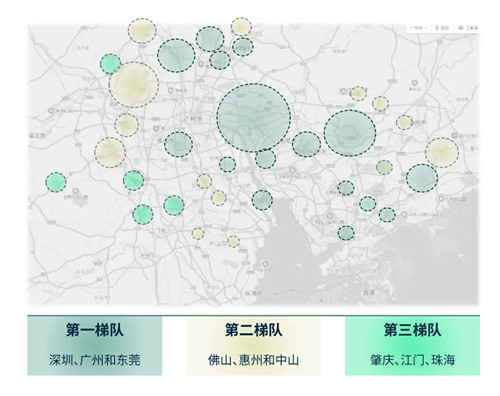 CBRE對影響粵港澳大灣區(qū)內(nèi)地九市物流設(shè)施投資決策的六個關(guān)鍵因子,即宏觀經(jīng)濟(jì)、交通設(shè)施發(fā)展優(yōu)勢、供應(yīng)面表現(xiàn)、需求表現(xiàn)、租金表現(xiàn)和投資市場情況進(jìn)行了相關(guān)分析并評級,由此得出綜合投資梯度評級,最終劃分出灣區(qū)物流設(shè)施市場的三個投資梯隊。