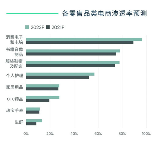 隨著部分平臺(tái)關(guān)閉、補(bǔ)貼力度降溫,疫情后高速發(fā)展的生鮮電商進(jìn)入行業(yè)整合期。但阿里巴巴、拼多多等頭部電商紛紛聚焦農(nóng)產(chǎn)品領(lǐng)域,加上相關(guān)政策的支持,長期來看生鮮電商極具成長空間。根據(jù)Forrester預(yù)測,2021年中國生鮮零售總規(guī)模接近人民幣9萬億元,而電商滲透率僅為9%,遠(yuǎn)落后于消費(fèi)電子、服飾鞋帽等零售品類。