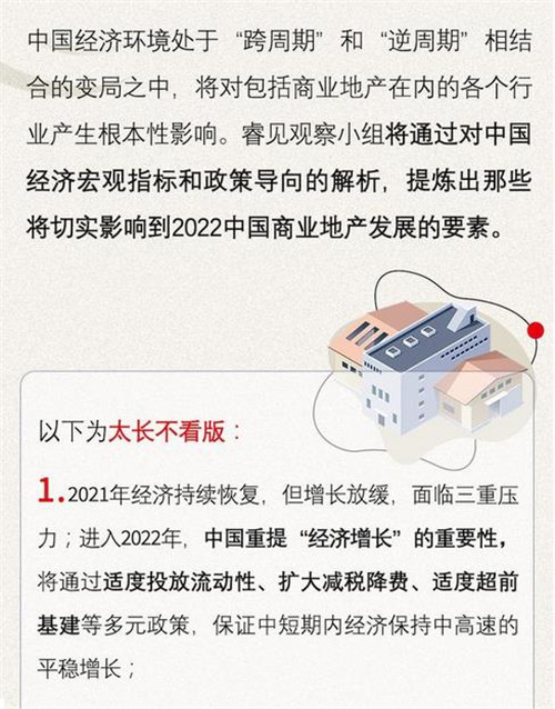 2022年,中國(guó)的宏觀經(jīng)濟(jì)政策將適度趨于偏松調(diào)節(jié),在熨平經(jīng)濟(jì)風(fēng)險(xiǎn)的同時(shí)重提經(jīng)濟(jì)中高速平穩(wěn)增長(zhǎng)的重要性,保證預(yù)期改善和經(jīng)濟(jì)復(fù)蘇的穩(wěn)定性。對(duì)于房地產(chǎn)市場(chǎng)這意味著什么呢?