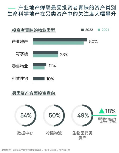 另類資產(chǎn)方面,數(shù)據(jù)中心持續(xù)獲得投資者關(guān)注,并在2022年的調(diào)查中連續(xù)第三年成為最受關(guān)注的另類資產(chǎn)。投資者對冷鏈物流和生命科學地產(chǎn)的關(guān)注度快速攀升,投資意向分別大幅上升12個和18個百分點。