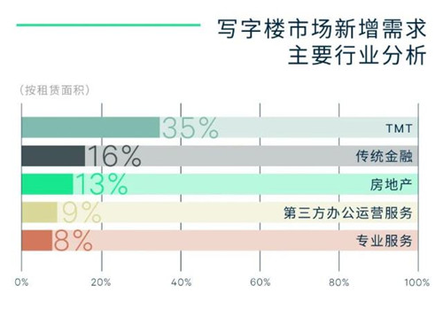 行業(yè)需求方面,TMT持續(xù)增長(zhǎng),穩(wěn)居第一需求,但其細(xì)分行業(yè)正發(fā)生變化,產(chǎn)業(yè)互聯(lián)網(wǎng)新增租賃需求占比超越消費(fèi)互聯(lián)網(wǎng)!笆奈濉币I(lǐng)數(shù)字經(jīng)濟(jì)發(fā)展,尤其推動(dòng)產(chǎn)業(yè)數(shù)字化。借此,TMT行業(yè)將邁向發(fā)展新階段。傳統(tǒng)金融以其行業(yè)韌性釋放穩(wěn)定租賃需求,同時(shí),資源整合促使行業(yè)內(nèi)部更新。第三方辦公服務(wù)運(yùn)營(yíng)商自2018年后呈收縮態(tài)勢(shì),2021年再度成為主力租賃需求來源。主打精裝房源、拎包入住的第三方辦公,成為疫情后企業(yè)控制預(yù)算的首選。