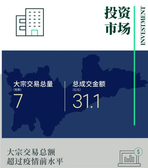 以武漢為代表的強(qiáng)二線城市,作為長(zhǎng)江經(jīng)濟(jì)帶上重要的交通樞紐中心,憑借豐富的資源和龐大的產(chǎn)業(yè)能量,疫情后以加速度重回主賽道,武漢城市經(jīng)濟(jì)圈也以3萬億的成績(jī)躋身全國(guó)省域城市圈第一。CBRE投資及資本市場(chǎng)部助力新世界集團(tuán)與新加坡投資機(jī)構(gòu),達(dá)成武漢光谷新世界項(xiàng)目的合作,代表著國(guó)際資本對(duì)武漢市場(chǎng)的高度認(rèn)可,向市場(chǎng)釋放出積極的投資信號(hào)。
