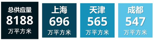 2021年下半年,租金地圖35個(gè)核心物流城市總供應(yīng)量約8,188萬平方米。其中總供應(yīng)量超過100萬平方米的城市有30個(gè),排名前三的上海、天津和成都均超過500萬平方米。