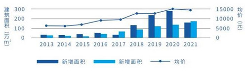 2021年度公寓供應(yīng)銳減,齊平三年前供應(yīng)量。限購加碼政策下,一部分客戶轉(zhuǎn)向公寓,成交同比上升24%。價格在市場反逼下,采用“以價換量”營銷手段,均價明顯同比降低5%。