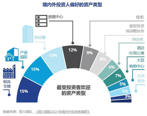 疫情沖擊下倉(cāng)儲(chǔ)物流資產(chǎn)極具韌性,資本市場(chǎng)對(duì)倉(cāng)儲(chǔ)物流的關(guān)注和配置熱度逐步提升,尤其是一線及周邊衛(wèi)星城市。根據(jù)高力國(guó)際《2021年境內(nèi)外投資者調(diào)研》報(bào)告顯示,投資者對(duì)物流倉(cāng)儲(chǔ)的偏好占比15%,躍至資產(chǎn)類型第一位。