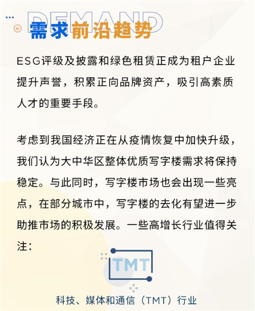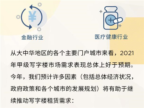 從需求來(lái)看,預(yù)計(jì)大中華區(qū)整體優(yōu)質(zhì)寫(xiě)字樓將保持穩(wěn)定的需求,與此同時(shí),寫(xiě)字樓市場(chǎng)也會(huì)出現(xiàn)一些亮點(diǎn),一些高增長(zhǎng)行業(yè)值得關(guān)注。