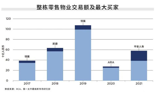 在開發(fā)市場,未來供應(yīng)極大概率將由優(yōu)質(zhì)開發(fā)商主導(dǎo)。在投資市場,險資、核心基金也正成為主力買家。中國內(nèi)地零售物業(yè)投資市場總額較2020年顯著復(fù)蘇,達(dá)人民幣578億元,同比上升107%。其中前三大買家收購金額占比則創(chuàng)下近年新高,達(dá)到60%。