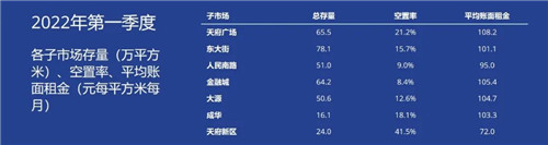截至2022年第一季度末,成都市優(yōu)質(zhì)零售商業(yè)市場(chǎng)總存量約880.6萬(wàn)平方米,空置率為9.2%,平均首層租金為370.1元每平方米每月。受整體外部經(jīng)濟(jì)環(huán)境、消費(fèi)者需求升級(jí)以及市場(chǎng)競(jìng)爭(zhēng)激烈影響,零售商業(yè)從類型和業(yè)態(tài)上保持調(diào)整態(tài)勢(shì),以不斷獲得消費(fèi)者青睞。
