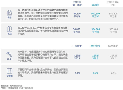 ·作為成渝雙城經(jīng)濟(jì)圈雙核之一,成都將持續(xù)受益于重要經(jīng)濟(jì)中心及科技創(chuàng)新中心的建設(shè)發(fā)展。2022年,金融及科技仍將是辦公市場(chǎng)的強(qiáng)勁去化動(dòng)力。