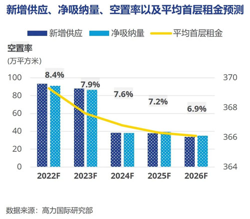 未來(lái)五年,考慮到更多非核心商圈新增項(xiàng)目入市,其平均租金顯著低于核心商圈平均水平,因此從全市層面來(lái)看,高力國(guó)際預(yù)計(jì)全市平均首層租金或逐年小幅度下降。