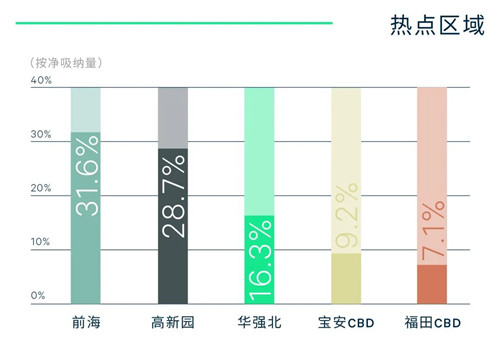 本季前海以及高新園片區(qū)表現(xiàn)優(yōu)異,二者共為市場貢獻了60.3%的凈吸納量。著眼租賃類型,搬遷類需求居市場主導(dǎo),占比約7成,主要來自科技、非金融類企業(yè)從產(chǎn)業(yè)辦公樓以及乙級以下的寫字樓搬遷至優(yōu)質(zhì)寫字樓。