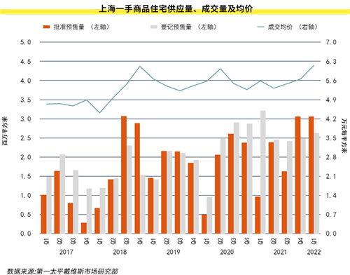 2022年第一季度,上海成交一手商品住宅約305.5萬平方米,環(huán)比上升5.5%;成交價格環(huán)比、同比分別上漲8.7%、10.1%,達到人民幣每平方米61,500元。成交房源區(qū)位來看,內環(huán)及內中環(huán)成交較上季度都有顯著增加,環(huán)比分別上漲了28.2%、50.0%,在預售價格穩(wěn)定的當下,結構性拉升了全市成交均價。目前上海住宅銷售市場仍舊維持著近年來最為嚴格的限購限售政策,盡管年初居民購房貸款有所放量,但整體松緊適度,在努力擠壓投機空間的同時保障首套及改善需求得以釋放。3月以來上海疫情逐步趨緊,受其影響,在傳統(tǒng)銷售旺季,無論是即將入市的銷售項目還是有購房計劃的購房者的交易計劃被迫擱置。積壓的供需兩端在接下來的第二季度集中釋放,屆時市場有望恢復活力。