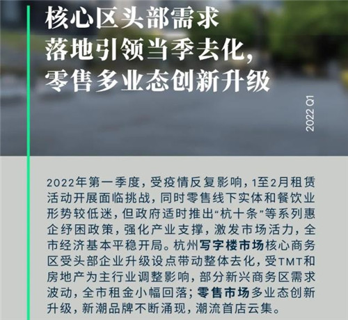 CBRE杭州分公司董事總經(jīng)理兼戰(zhàn)略顧問部負(fù)責(zé)人何達(dá)表示,未來六個(gè)月,杭州零售物業(yè)市場或?qū)⒂瓉矶鄠(gè)新項(xiàng)目入市,共計(jì)18萬平方米,主要位于未來科技城、濱江和下沙等非核心板塊。其中,龍湖杭州吾角天街預(yù)計(jì)于今年年中開幕,也是龍湖在華東的第一個(gè)輕資產(chǎn)商業(yè),項(xiàng)目定位年輕消費(fèi)群體,目標(biāo)通過引進(jìn)包括運(yùn)動(dòng)、潮玩以及三坑文化等在內(nèi)的相關(guān)業(yè)態(tài),打造下沙潮流新地標(biāo)。隨著優(yōu)質(zhì)購物中心的相繼入市,非核心板塊商業(yè)布局逐步完善,年輕消費(fèi)力助推杭州商業(yè)多元發(fā)展,依托于互聯(lián)網(wǎng)相關(guān)產(chǎn)業(yè)的發(fā)展,各類潮流首店入駐杭州,而存量項(xiàng)目升級以及新項(xiàng)目的主題定位等共同作用下,個(gè)性潮流成為杭州零售商業(yè)的獨(dú)特標(biāo)簽。