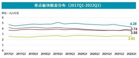 從租金表現(xiàn)來(lái)看,許多寫字樓業(yè)主在租金和租賃條件上不得不作出更多讓步,以期在全球性經(jīng)濟(jì)持續(xù)下滑、疫情等多重因素沖擊的背景下維持現(xiàn)有租戶和吸引新租戶。本季度甲級(jí)寫字樓平均租金水平穩(wěn)中略降,環(huán)比下降0.07%至人民幣2.81元/平方米/天。