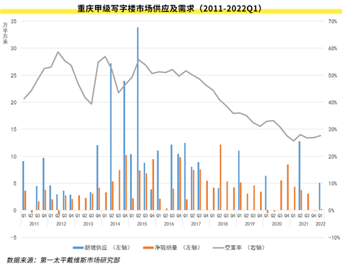 據(jù)第一太平戴維斯近日發(fā)布的重慶房地產(chǎn)市場(chǎng)報(bào)告,2022年第一季度城市更新助推重慶零售市場(chǎng)傳統(tǒng)商圈升級(jí)煥新;寫(xiě)字樓市場(chǎng)凈吸納量回升幅度有限,租金水平保持基本穩(wěn)定。