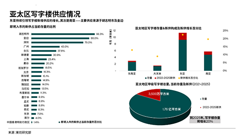 萊坊亞太區(qū)研究部主管李敏雯表,市場仍然釋放著喜憂參半的信號,尤其是在寫字樓租賃需求處于不斷變化狀態(tài)的發(fā)展中國家。由于經(jīng)濟復蘇很大程度取決于外資投資,因此如今的宏觀經(jīng)濟環(huán)境使得市場比任何時候都更加難以預測。盡管如此,整個疫情期間的租金下浮并不如此前的危機嚴重,我們預計未來幾個季度亞太地區(qū)的寫字樓租金及入住率不會受壓于供應端。由于混合辦公模式是大勢所趨,租戶將不會像過去那樣過度依賴辦公空間,這將支持已走出困境的市場穩(wěn)定租賃需求。