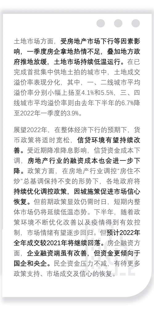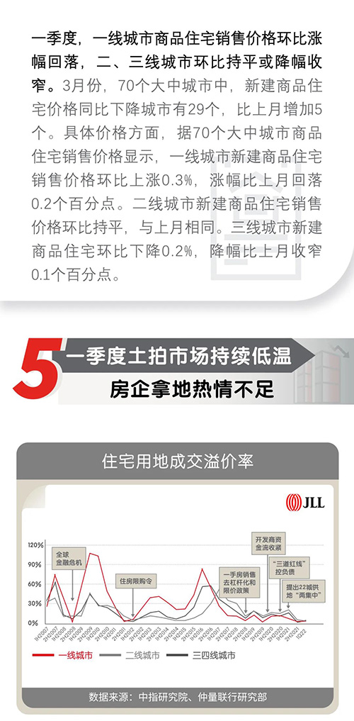 一季度,中國住宅市場政策端、信貸端、貨幣端等多方面迎來邊際放松,整體住宅成交規(guī)模持續(xù)環(huán)比下跌趨勢,房企拿地?zé)崆椴蛔,土拍市場保持低溫?/P>