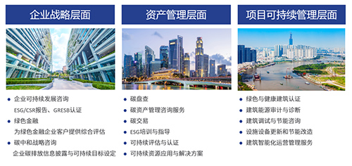 高力國際能夠為企業(yè)及其資產(chǎn)提供全面的可持續(xù)發(fā)展解決方案、ESG戰(zhàn)略制定;同時能對資產(chǎn)和項目的碳排放管理以及綠色健康認證提供全面的咨詢服務,助力企業(yè)實現(xiàn)碳中和。