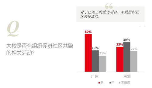 開發(fā)商與運營商需關(guān)注企業(yè)用戶的人文關(guān)懷,并且履行社會責(zé)任。無論是對在建或存量辦公樓項目,都需以前瞻性的眼光積極投入辦公環(huán)境的多樣性建設(shè),以空間的再利用與改造開辟更多關(guān)愛用戶的活動場所。與此同時,我們鼓勵開發(fā)商不斷探索項目如何為所在社區(qū)提供價值,促進社區(qū)共同繁榮。