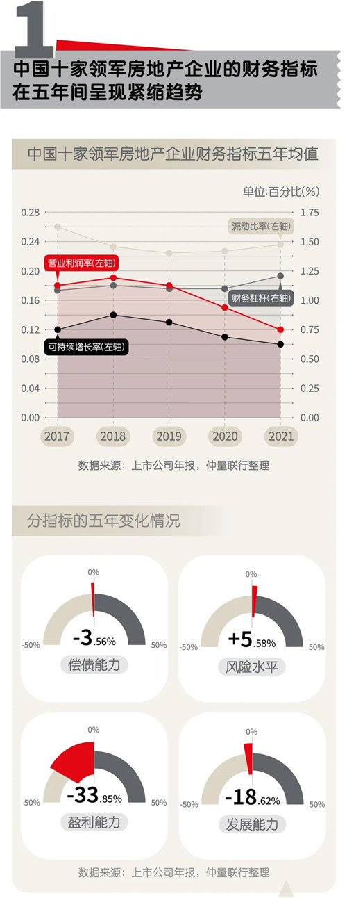 我國房地產(chǎn)行業(yè)高速發(fā)展二十年以來,人口、城市化、高經(jīng)濟增長等紅利正在逐步削弱,房地產(chǎn)領(lǐng)軍企業(yè)的營業(yè)利潤率近五年下跌24.9%。在后疫情時代,行業(yè)周期進入增速放緩,高質(zhì)量提效發(fā)展階段。
