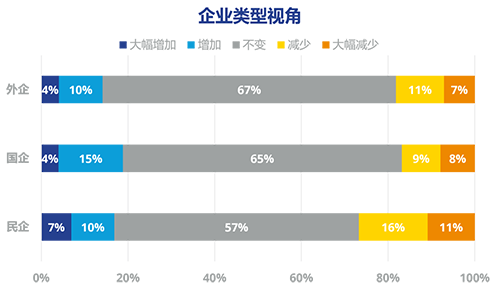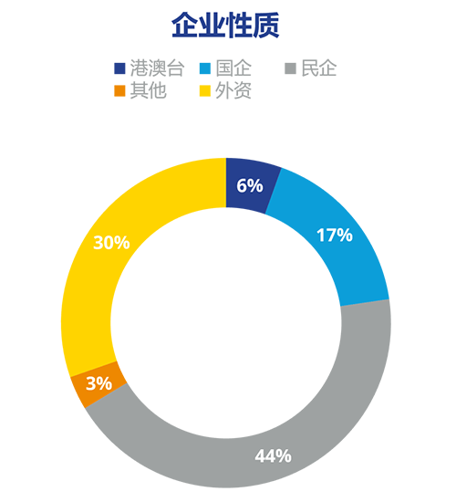 本次受訪企業(yè)類型,主要為民企占44%、外資占30%、國企占17%